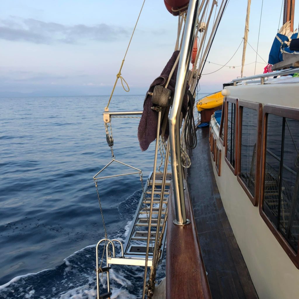 While it mainly navigates under motor, with the sails open it displays its traditional elegance.